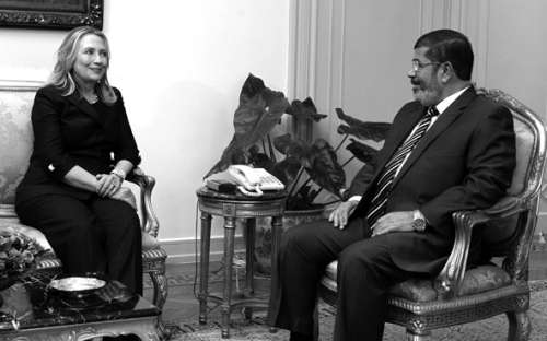7月14日,希拉里访问埃及,与穆斯林兄弟会推出的领导人穆尔西面对面会晤,并试图与对方开展合作。在很多年里,与黎巴嫩真主党、巴勒斯坦哈马斯有千丝万缕联系的后者,是美国政府与埃及军方共同的敌人。