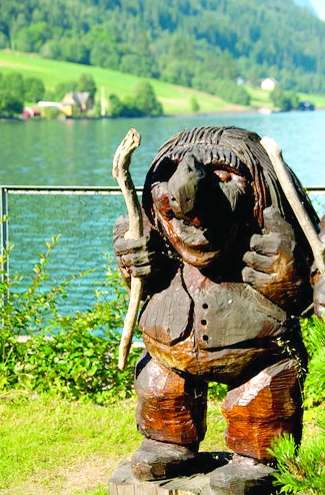 对于我们这样的游客而言,挪威人艰苦的生活止于传说。当然,在享受之余,也不能不承认,这些偏远地区的物价高得有点离谱——在必胜客吃块9寸披萨,要了两杯苏打水,就花了36美元。为了省钱,我们索性跑到附近的集市上,购买了做三明治的材料和塑料餐盘。第二天一早,我们就开着租来的、配有GPS的雪铁龙轿车,驶上了林间小路。