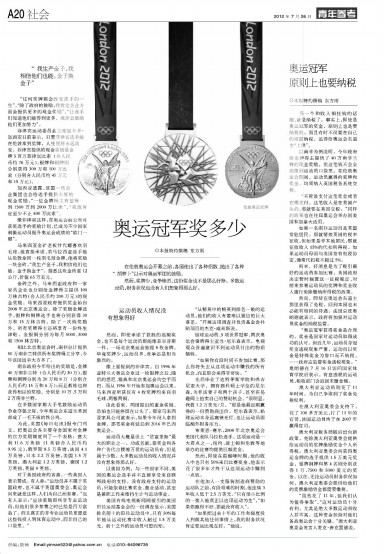 “任何奖牌都会改变选手的一生”,“除了政府的鼓励,我肯定企业方面会提供更多的现金奖励”,“让选手们知道他们能得到更多,或许会激励他们更加努力”。