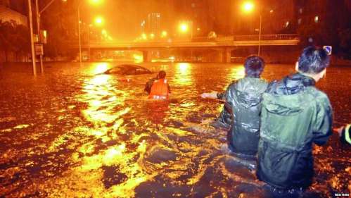 周六北京城区遭遇了持续16小时的降雨,平均降雨量达9英寸(约合23厘米)。新华社称,积水超过了北京污水排放系统的负荷能力,导致一些街道和居民区被水淹没。