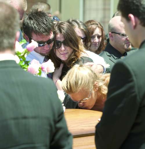 7月26日,丹佛枪击案遇难者亲属在葬礼上亲吻棺木。 |