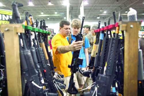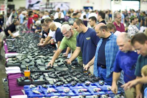 7月28日,美国弗吉尼亚州的购物者在Chantilly参加枪展会。 |