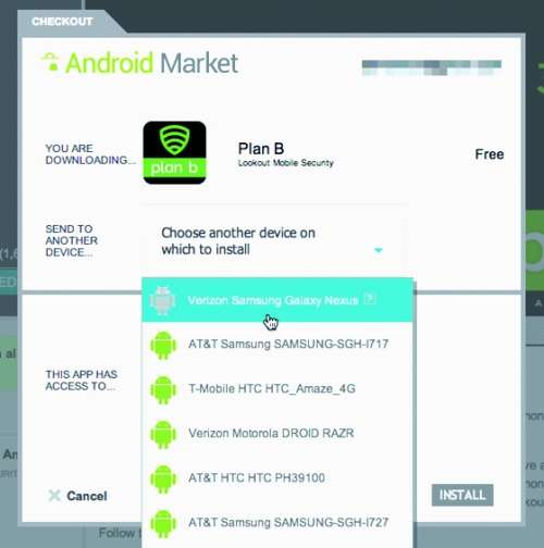 相比一般的手机找回软件,Plan B最大好处在于不用事先安装。手机丢失后,直接去安卓市场(Android Market),输入你的Gmail账号密码。然后你会看到支持的安卓设备,找到你的手机型号后就可以远程安装Plan B了。