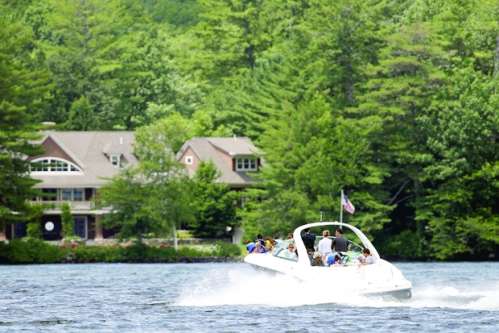 第三天的太阳升起时,我已下定决心,一定要尝试下驾驭摩托艇劈波斩浪的滋味。不过要想过把瘾,先得通过25个问题的测验,分数够了才能取得新罕布什尔州的临时水上驾驶许可证。事实上,我前一个晚上就到摩托艇租借店里拿了一份学习指南,一有工夫就看上一段。对我来说,这项运动是神秘而危机重重的。众所周知,新罕布什尔州有句格言:“要么自由地活着,要么去死”,如今我觉得,这似乎是在刻意将摩托艇运动与死亡联系在一起。