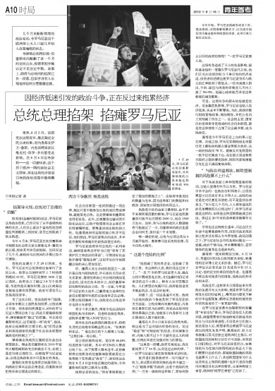 可是,这场纷争的源头恰恰就是经济。受金融危机影响,罗马尼亚也陷入经济低迷,失业率不断攀高。为此,前政府推行财政紧缩政策,增加税收,并把公务员工资削减了四分之一。社会民主党、国家自由党和保守党组成的社会自由联盟,就是在这种情势下占领了议会最多数,成为执政党。