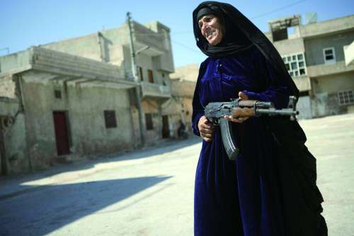 8月10日,叙利亚妇女Fatma abdul Rahman手持武器,声称自己不会离开家园,虽然军队的攻击造成她家里3人死亡。 |