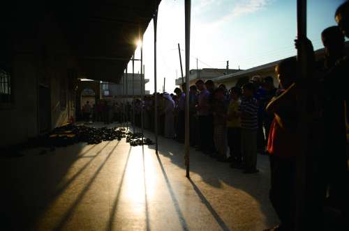 8月12日,叙利亚难民在叙土边境排队登记,逃离本国战乱去往土耳其。 |