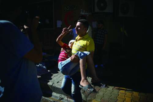 8月10日,阿勒颇一名受伤的少年依偎在亲人怀里。 |