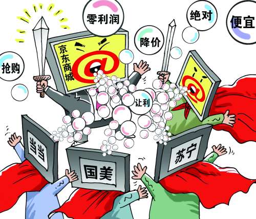 8月14日,京东商城以“无底线便宜”、“三年零毛利”为名,向苏宁下价格战“战书”,苏宁则以“史上最强促销”应战。