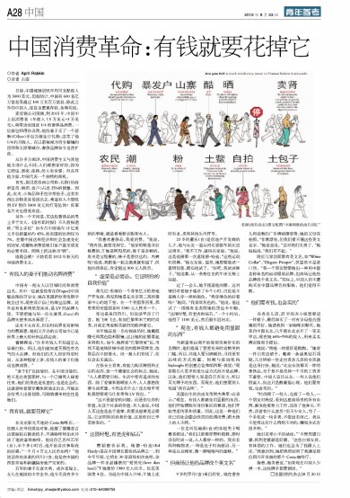 曹解释说:“许多有钱人不知道怎么穿着打扮。所以,他们就知道买那些有名气的大品牌,但他们的夫人却穿得更时尚。从某种程度上讲,有钱人的妻子们推动名牌消费。”