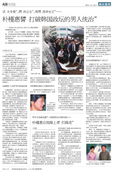 朴槿惠誓“打破韩国政坛的男人统治”