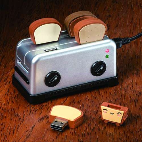 这只可爱的USB集线器,造型“抄袭”了喜欢西式早饭家庭的厨房标配——吐司机。而与其搭配工作的面包U盘,也都配上了搞怪的卡通表情,它们还有不同的名字哦!售价:24.99至27.99美元。