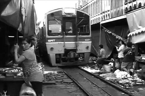 于是,变化就发生在汽笛鸣响的那一刻,所有人都忙碌起来,动作麻利地把摊子收拾到街边,人也紧紧地贴墙而立。不过两三分钟时间,原本摆满了东西的铁轨就被收拾得一干二净,紧接着,一辆火车擦着人们的肩膀缓缓驶过。