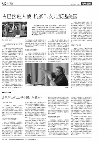 菲德尔·卡斯特罗在1959年推翻亲美政府,美国与古巴自此对立。1962年古巴导弹危机后,古巴遭美国经济制裁至今。在这样的背景下,格伦达离开古巴移民到“敌营”美国,无疑会被视为用双脚对劳尔下令展开、她老爸受命执行的经济改革投下了“不信任票”,甚至会被视为是对古巴现政权的“不信任票”。