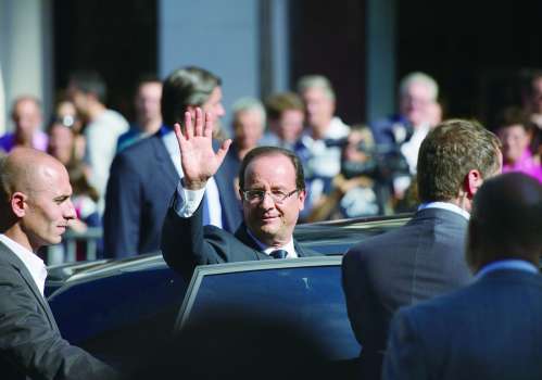 当地时间9月16日,法国总统奥朗德在爱丽舍宫向参观者挥手告别。为庆祝第29届欧洲遗产日,法国开放了全国1.6万处历史文化遗产。遗产日活动始于法国。1984年,在时任法国文化部长雅克·朗的推动下,不少法国历史文化遗产免费向公众开放。最初这项活动定于每年9月的第三个周日举办,1992年改为周六和周日两天举行。活动旨在让更多人了解、热爱进而自觉保护历史和文化遗产,今年的主题是“探访隐藏的遗产”,奥朗德与女友瓦莱丽在爱丽舍宫欢迎参观者。