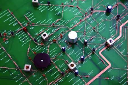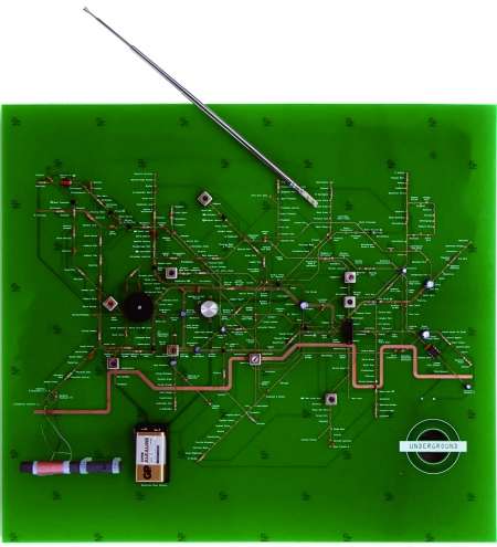 四通八达的伦敦地铁线路,同隐藏在家用电器里的电路板在某种程度上有着异曲同工之妙。一位日本设计师对自家的收音机电路进行“线路改造”,电阻、电容、稳压器等各种电器元件连接着重新设计的印刷铜线,一张详细到站的伦敦地铁线路图就诞生了!拿着它乘坐地铁,别说多拉风啦!