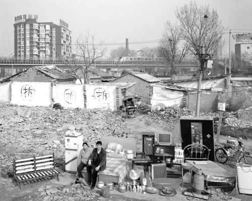 和很多中国家庭一样,这对夫妇的家被列入拆迁范围。照片上,他们坐在自己的床上,身后的墙壁上写着汉字“拆”。不过,对于这对夫妇来说,这是一件好事,因为政府支付了足够的赔偿。