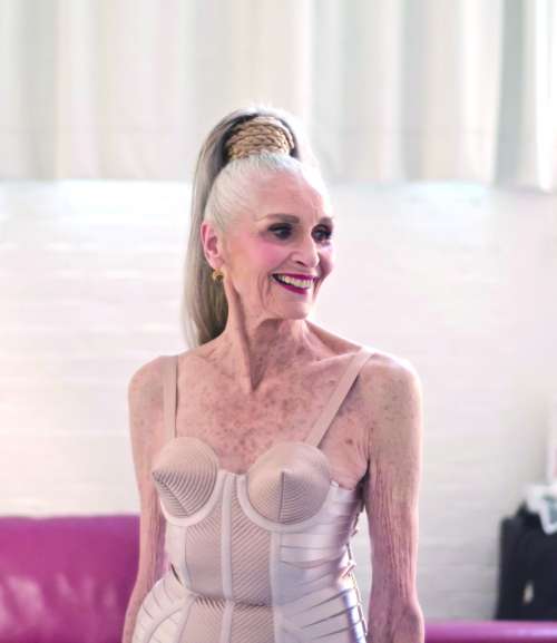 精彩纷呈的好戏还在后头。84岁高龄的达芙妮·塞尔菲(Daphne Selfe)今年初大摆流行歌星麦当娜超酷造型,身穿娜姐的让·保罗·高缇耶(Jean Paul Gaultier)锥形胸罩,为乐施会组织的大胸罩狩猎活动造势;77岁的丹麦前模特吉特·李(Gitte Lee)出任瑟琳的广告片主角;81岁高龄的卡门·戴尔·奥利菲斯(Carmen Dell’Orefice)则参加了比利时奢侈品手袋公司德尔沃(Delvaux)的最新广告片。
