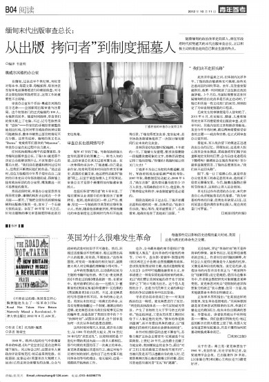 这些时刻对现代人来说,或许有点陌生,从1381年的农民大起义,到16世纪30年代的“求恩巡礼”。比较特别的是17世纪中期的英国内战——很多人都相信,那个时候的英国经历了一次真正的革命。麦克林恩偏偏反其道而行之,通过对每个历史时刻的剖析,他给出了这些变革不能同革命划等号的理由。毫无疑问,这是一项颇具开拓性的工作。