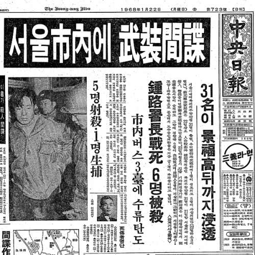 朝鲜特种兵花了两天两夜才穿过防线,但行迹还是被几名伐木工发现。朴正熙闻讯,立即下达“甲”号非常态势令,指示韩国反渗透部队在整个汉城-京畿道地区展开拉网式清剿。然而,韩国指挥官不清楚对方的具体目标,将大部分力量投放到更靠近朝韩军事分界线前沿的地域。结果,精心伪装的朝鲜特种兵还是在1月21日晚8时左右摸进了汉城。