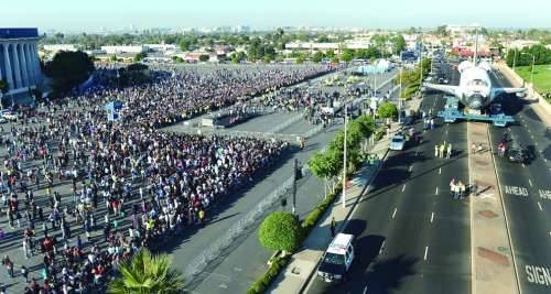 最近退役的美国国家航空航天局(NASA)航天飞机“奋进号”,在10月12日踏上了人们为它准备的最后一段旅程——像个凯旋的英雄一样穿过洛杉矶的街道,穿过社区、购物中心,而道路两边是此起彼伏的欢呼和掌声。