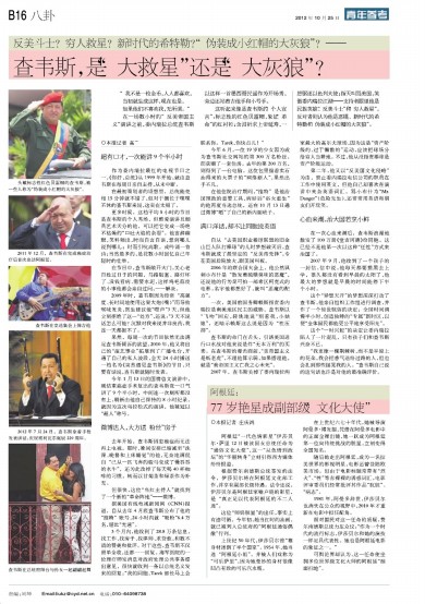 自从“去美国职业棒球联盟的旧金山巨人队打棒球”的儿时梦想破灭后,查韦斯就成了最坚定的“反美帝先锋”,专在美国后院放火,跟美国叫板。