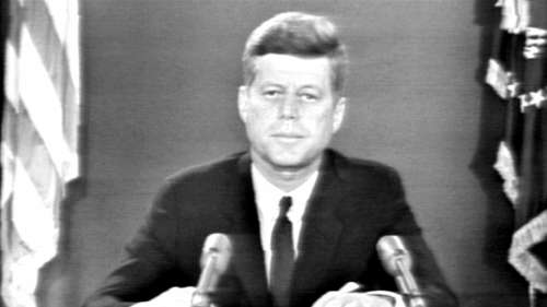 当年10月22日,肯尼迪在电视讲话中称,美国受到了核威胁,表示“要对苏联发动全面的报复性回应”。