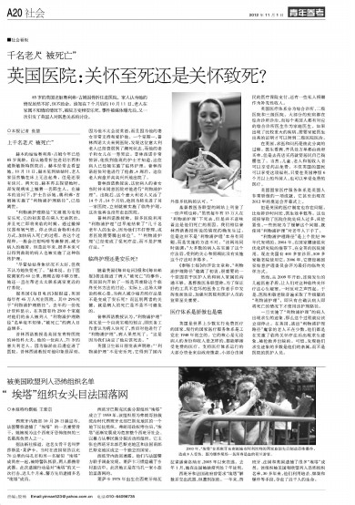 英国卫生部日前发表声明称:“‘利物浦护理’不是安乐死,它得到了国内外很多机构的认可。”