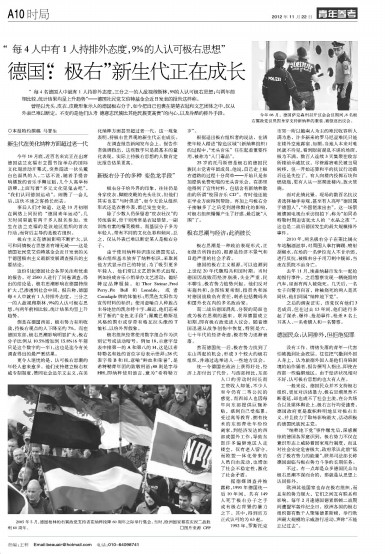 更令人堪忧的是,认可极右思潮的年轻人愈来愈多。他们支持建立极右权威专制制度,赞同社会达尔文主义,在美化纳粹方面甚至超过老一代。这一现象表明,持极右世界观的新生代正在成长。