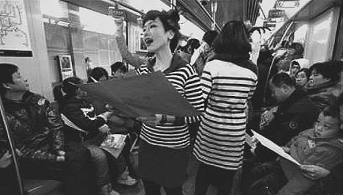 最近,新浪微博上疯传一段有关文艺女青年在地铁上念诗的视频。3个女孩身穿紧身衣,头顶羽毛高帽,在拥挤的地铁车厢朗诵诗歌。