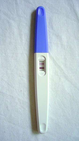 为了掌握笑点,让我们还是先来看看验孕棒的测试原理:利用尿液中所含的“人类绒毛膜性腺激素”(HCG,怀孕女性体内会分泌的孕激素)来检查、判定怀孕与否。只要洒一点尿液在上面,查看是否出现了粉线、蓝线、加号、减号,或者说明书上标注的其他什么符号。总之如果符号出现,那么你八成是“中奖”了。