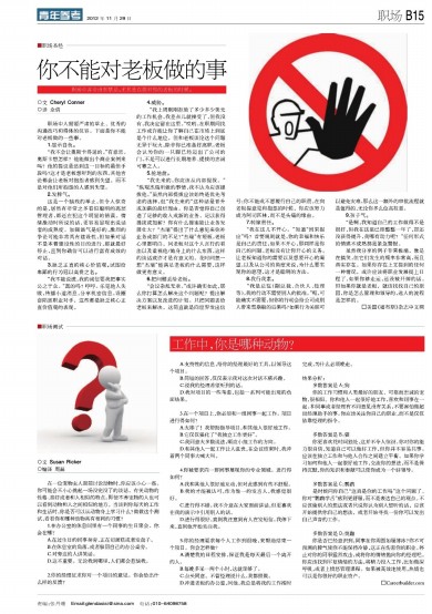 你是否已经意识到,同事在你周围如履薄冰?你不可预测的脾气使你不能保持冷静,这正在伤害你的职业。停止对你的同事猛烈攻击,或将你的情绪抛向你的经理吧。你应该找到平复情绪的方法,将精力投入工作,比如做深呼吸,或者上愤怒管理课程。如果被高效地使用,热情也可以是你很好的职业资产。