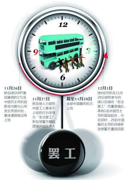 11月26日凌晨4时,新加坡SMRT公司的大巴抵达员工居住的兀兰宿舍,但171名中国籍公交车司机拒绝上车。