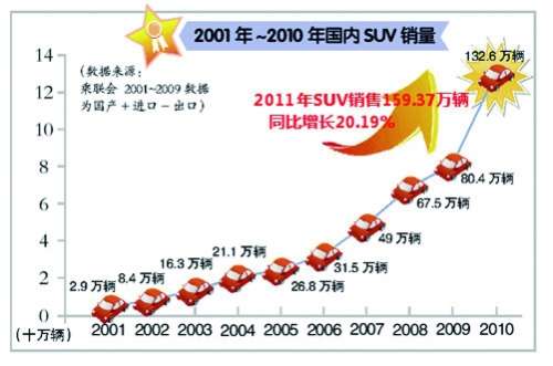 在当下的中国车市,SUV凭借高通过性和宽敞的空间,赢得了越来越多的青睐,购买热潮持续发酵。数据显示,今年前10个月,全国SUV销量为161万辆,同比增长26.1%。不少厂商预计,未来几年,SUV市场份额将占狭义乘用车市场规模的20%以上。由此,各车企纷纷觊觎这块不断膨胀的蛋糕,SUV生产计划占据各车企产能蓝图的重要位置。