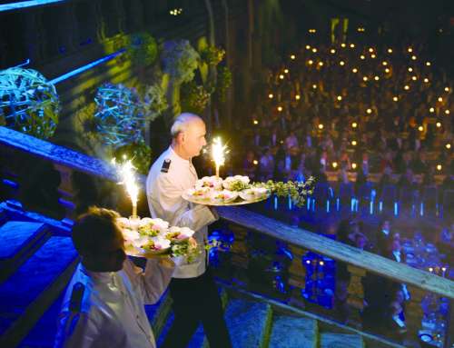 据报道,诺贝尔晚宴厅内不仅要坐满1000多位来宾,还要留出缝隙供数百位服务员穿梭,因此被称为“世界上最拥挤的奢华晚宴”。餐桌上会摆放为纪念诺贝尔奖九十周年而制作的诺贝尔餐具,使用7000件瓷器、10000件银器和5400个酒杯。