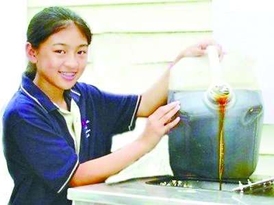 这个当时还在上小学的小女生在谷歌上找到了一篇文章,讲述旧金山地区在这一领域的努力,她以此为借鉴,找了一群朋友帮忙,组成小区服务队,决定推动一项名为“化油脂为燃料(Turn Grease into Fuel,简称TGIF)”的小区服务。她们在社区中发送上千份传单、月历,大力提倡回收废油的重要性,并从社区区民和餐厅手中收集废油。
