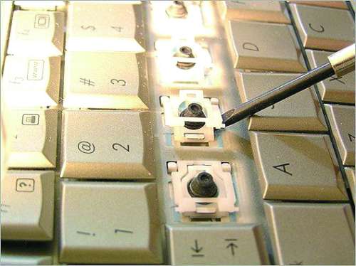 G 90年代:剪刀式开关键盘 上世纪90年代,键盘慢慢有轻便化趋向。原有的橡胶圆顶键盘按键间距离及按键体积均过大,人们对其进行了改进。方法是在内部控制结构中采用一个剪刀式开关,使得按键间距离及按键大小均显著减小。这种设计在笔记本电脑和较薄的键盘上使用较多。 |