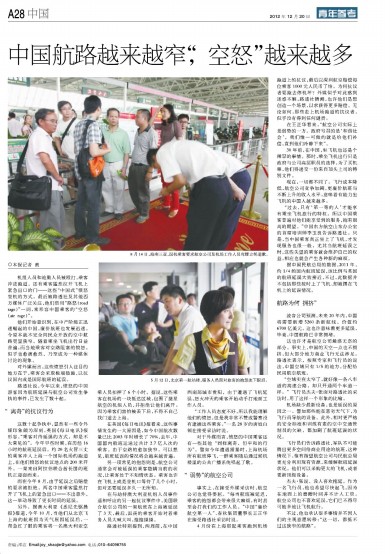 在英国《每日电讯》报看来,这些事情发生的一大原因是,如今中国航次数量已比2003年时增长了70%,去年,中国国内航班运送过共计2.7亿人次的乘客。由于空路的愈加狭窄,可以想见,航班延误的情况将会越来越普遍。