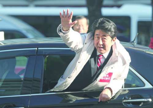在12月16日举行的日本国会众议院选举中,最大在野党自民党获得压倒性胜利,时隔3年多重新夺回政权。如无意外,自民党党首安倍晋三将在26日举行的国会首相指名选举后出任首相并组建新内阁。18日,安倍与美国总统奥巴马举行电话会谈,双方就强化日美同盟达成一致。而安倍获胜后表示,出任首相后首次出访将赴美国,时间可能在2013年1月下旬到2月之间。图为选举前安倍在大阪参加当地举行的竞选拉票活动。