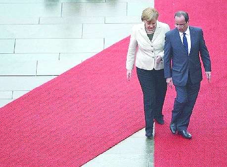 5月15日,刚刚就职的奥朗德首次出访德国。与身边笑容满面的默克尔相比,奥朗德显得表情僵硬、十分紧张,“青涩”到让人不禁为他捏把汗。