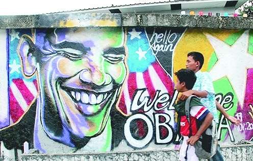 11月19日,美国总统奥巴马踏上了访问缅甸的“破冰之行”。为表达对他的欢迎之情,一群艺术家在仰光街头画了一幅奥巴马头像。可到了第3天,这幅画被人“恶意”涂黑。几天后,奥巴马头像又出现在仰光街头更显眼的地方,却不料又被人涂改,睁眼变成了闭眼。