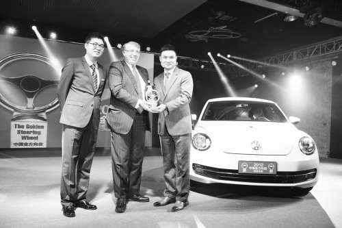 12月18日,2012“中国金方向盘奖”在北京桥艺术中心颁布结果。上海大众Polo GTI、大众全新一代甲壳虫、华晨宝马全新BMW3系长轴距版、一汽-大众全新奥迪A6L、奔驰全新M级分别获得了“小型车组”、“紧凑型车组”、“中型车组”、“行政及豪华车组”、“SUV组”的“中国金方向盘奖”。