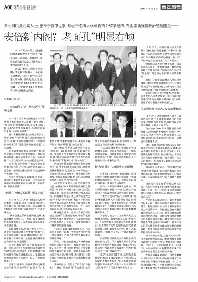安倍新内阁:“老面孔”明显右倾