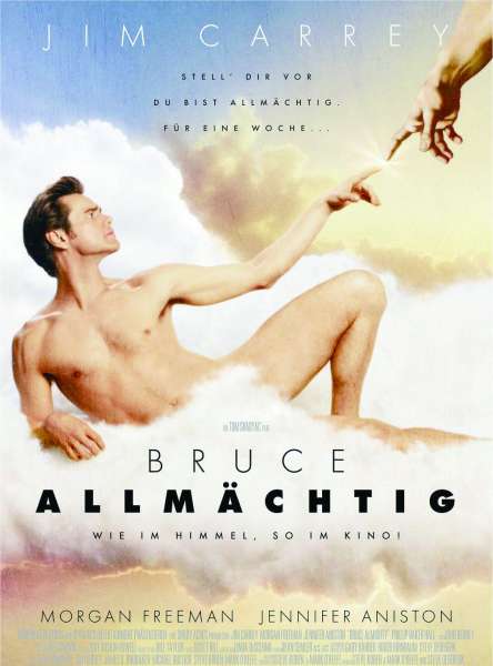 在2003年上映的影片《冒牌天神》中,金·凯瑞拿出了在《变相怪杰》中的丰富表情和搞怪天分,还找来詹妮弗·安尼斯顿担纲女主角。这部平民“客串”上帝,利用“职权”谋取私利的影片继承了金·凯瑞的幽默模式,笑点很多,情节出乎意料,在全球获得了4.8亿美元的票房,尽管它在著名影评网站烂番茄上的好评度只有43%。