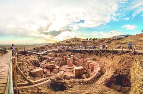 抢在大队游客光临前,我独自来到了乌尔法,一早便打出租车直奔郊外。即便之前在互联网上做足了功课,亲临其境还是免不了心跳加速。因为到得早,哥贝克力丘上没几个人影,只见山坡上被挖出约三个网球场大小、七八米深的大坑,旁边坐落着科研人员的简易宿舍。现场铺有木板路,人们可以在大坑上方行走,观看考古学家进行发掘工作。