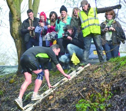 2012年12月27日下午,卡梅伦身穿黑色的“耐克”莱卡运动衣和同色短裤,右膝套着一个黑色弹力护膝,英姿勃发地出发了。虽然赛程只有一英里(约1.6公里)长,但比赛路段可谓“地形复杂”,既有野草丛生的湿滑泥地,又有冰冷刺骨的齐膝深小河,还有一处只有半人高的拱桥桥洞,要求选手双膝跪地、在河水中手脚并用地爬着钻过。