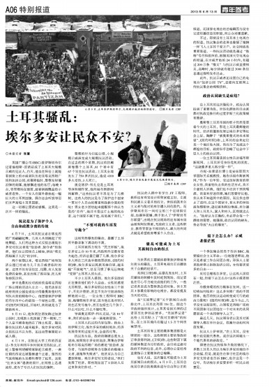 英国《卫报》称,在暴乱发生时,土耳其媒体的转播车及时赶到现场,而记者也在尽心尽力地完成他们的工作,一些记者甚至成为警察袭击的对象。但土耳其3家最有影响的电视台,都没有提及当天的对抗。