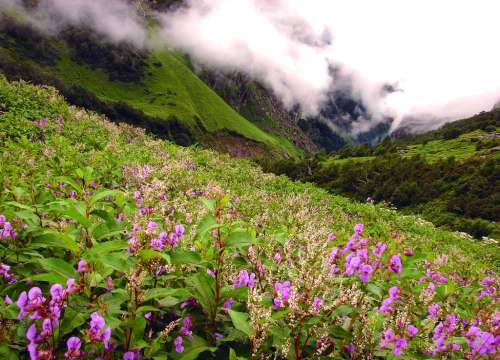 最后一天,我徒步前往花谷国家公园,逆普什帕瓦蒂河(Pushpawati River)而上,只需步行几英里就能看到目的地。钻过一条狭窄的峡谷,刚刚重见天日,仙境般的美景即刻呈现在面前,这里的景色与甘加利亚截然不同,让人感觉好像被送到了一个童话世界。