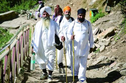 每年5月底至10月初,除非被季风带来的暴雨阻断山路,都会有成千上万锡克教教徒赶往“圣湖”朝拜。有不少人是举家出动,领队的男子留着浓密的胡须,戴着彩色头巾。其余多数信众身穿传统的无领长袖衫或蓝色长袍,还有人赤着脚,以此表达自己的虔诚。至于那些骑骡子的,兴许是有钱人吧;当然还有更讲究的,坐在由四个人抬着的木轿上。