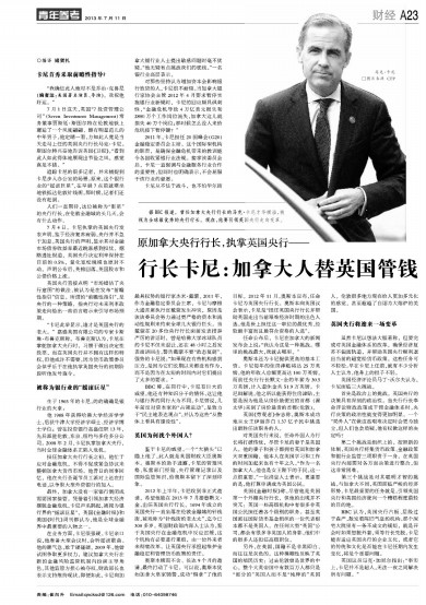 行长卡尼:加拿大人替英国管钱